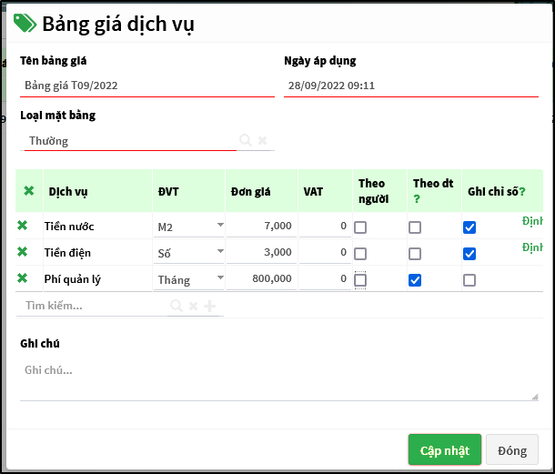Việc quản lý các chi phí dịch vụ là một trong những bước quan trọng của quản lý tòa nhà. Không chỉ quản lý những dịch vụ cố định hàng tháng phần mềm còn cho phép quản lý các dịch vụ có định mức như tiền điện, tiền nước.