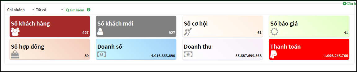 Đối với quản lý việc nắm bắt nhanh tình hình hoạt động của doanh nghiệp theo ngày, tuần, tháng, năm là rất quan trọng và cấp thiết. Với dashboad xe của GoTran sẽ giúp chủ doanh nghiệp có cái nhìn tổng quan nhất khi vào phân hệ. Quản lý sẽ nắm bắt nhanh các thông tin như: Tổng số khách hàng, số khách hàng mới, số cơ hội, số báo giá, số hợp đồng...ngày khi truy cập phần mềm