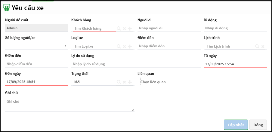 Đối với đơn vị vận tải quản lý theo quy trình nhân viên kinh doanh tạo đơn yêu cầu => phần mềm thông báo cho điều hành xếp xe. Thì đây là 1 tính năng đáng mong chờ.